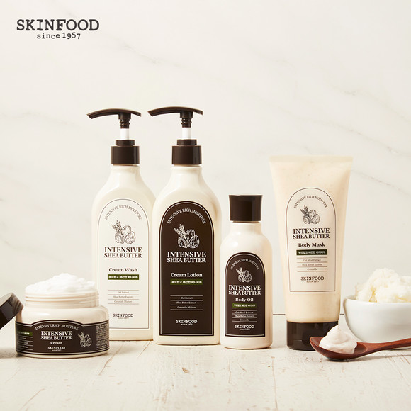 스킨푸드 ‘인텐시브 시어버터 크림 워시’는 부드러운 거품으로 클렌징 해주는 고보습 바디워시로, 바디 클렌징 시작 단계에서부터 보습효과를 전달해주는 제품이다. 수분을 끌어당기는 슈퍼 통곡물 오트와 시어버터 추출물이 함유됐고, 피부 장벽 강화에 도움을 주는 세라마이드 믹스처를 함유해 피부를 보호해준다.