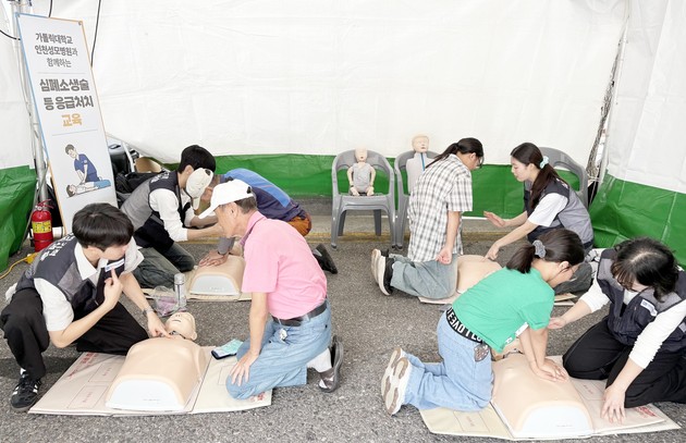 가톨릭대 인천성모병원은 축제 현장에 체험 부스를 마련하고 시민들에게 심폐소생술과 자동심장충격기(AED) 사용법을 교육했다. 부스에서는 전문 의료진이 시범을 보인 후 참가자들이 직접 인형을 대상으로 가슴 압박과 인공호흡을 실습하며 응급상황 대처 능력을 체험했다.