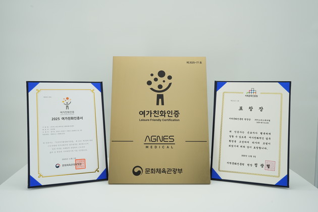 미용의료기기 전문기업 아그네스메디컬은 지난 5일 서울 강남구 가빈아트홀에서 열린 문화체육관광부 주최, 지역문화진흥원 주관의 '2025년 여가친화기업 인증식'에서 '지역문화진흥원 원장상'을 수상했다고 밝혔다.