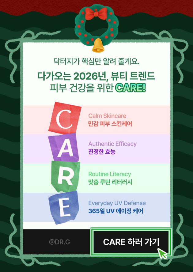 더모코스메틱 브랜드 닥터지가 2026년 뷰티 트렌드 키워드로 'C.A.R.E'를 선정하고, 이와 연계한 고객 이벤트 '홀리데이 글로우 토크(Holiday Glow Talk)'를 진행한다고 22일 밝혔다.