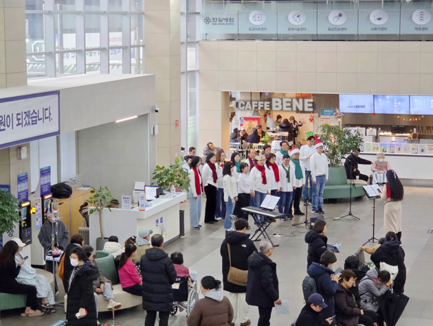 한전의료재단 한일병원은 지난 20일 병원 1층 로비에서 환우 및 내원객을 위한 크리스마스 음악회 '2025 크리스마스에는 축복을'성황리에 개최했다고 밝혔다.