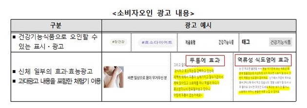그러나 시험대상 11개 중 9개 제품에서 '장 건강', '효소 다이어트' 등 과학적으로 입증되지 않은 표현을 사용해 건강기능식품으로 오인 할 수 있는 광고를 하거나 과대·허위사실이 포함된 체험기를 게시하고 있었다.
