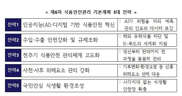 정부는 관련 부처 합동으로 향후 5년간('26∼'30)의 식품안전 정책 방향을 담은 '제6차 식품안전관리 기본계획'을 수립·발표했다.