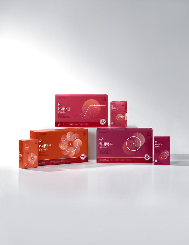 리뉴얼한 '화애락 진 토탈솔루션', '화애락 후 활력포커스'의 경우 정관장 화애락의 여성갱년기 신규 특허를 기반으로 갱년기 여성건강 전문성을 고도화했다. '화애락 본 혈행포커스'까지 3종 모두 칼로리를 저감해 섭취 편의성을 개선하는 등 여성건강 고민에 대한 다양한 니즈를 대응했다.