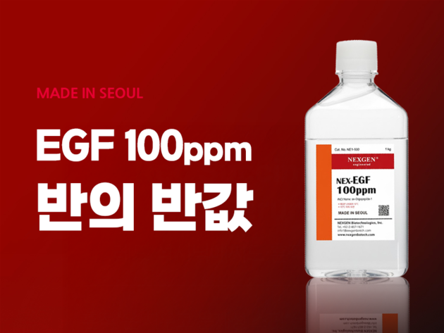 넥스젠바이오는 자사 홈페이지를 통해 EGF 판매를 시작했으며, 앞으로 공급 가능 원료도 지속적으로 확대할 방침이다. 현재 넥스젠바이오 홈페이지에서는 EGF 100ppm 1kg 패키지가 시중가의 '반의반 값'인 55만원에 판매 중이다.