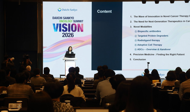 지난 17일 서울 소피텔 앰배서더에서 열린 '온콜로지 비전 서밋 2026'은 항암 전문 기업으로서 다이이찌산쿄의 연구 역량과 글로벌 개발 경험을 공유하기 위해 마련됐다. 다이이찌산쿄는 혁신 신약 '엔허투®'를 탄생시킨 독자적인 DXd(데룩스테칸)-ADC 플랫폼을 보유하고 있으며, 현재 7개의 주요 후보물질을 중심으로 10개 이상의 암종에서 30건 이상의 임상 3상을 진행 중이다.