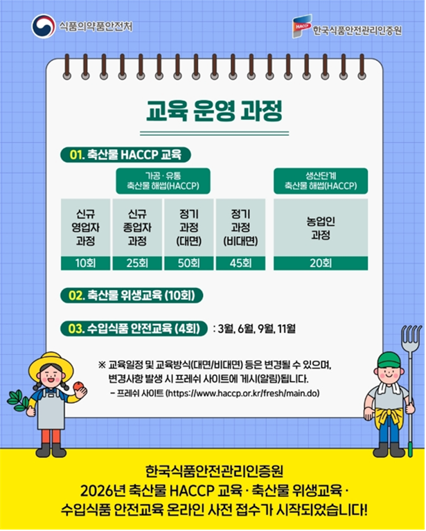 2026년 교육 세부 일정은 해썹인증원 프레쉬(haccp.or.kr/fresh/main.do) 누리집에서 확인할 수 있으며, 교육 신청은 연중 상시로 가능하다.