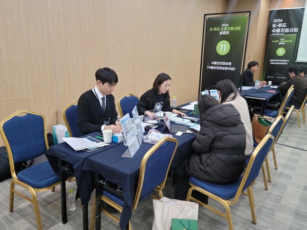식품안전정보원(원장 이재용)은 '2026 K-푸드 수출지원사업 설명회'에 참여해 K-푸드 수출기업을 대상으로 식품안전정보원의 수출지원사업을 소개하고 수출기업의 애로 해소를 위한 1:1 상담 부스를 운영했다.