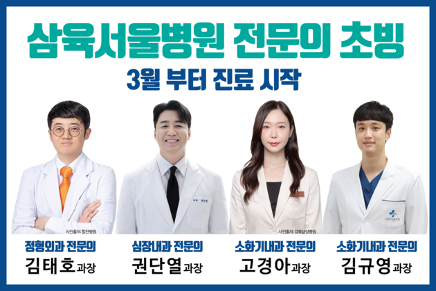 삼육서울병원(병원장 양거승)은 오는 3월부터 정형외과, 심장내과, 소화기내과 신임 의료진 4명을 초빙해 진료를 시작한다고 밝혔다.