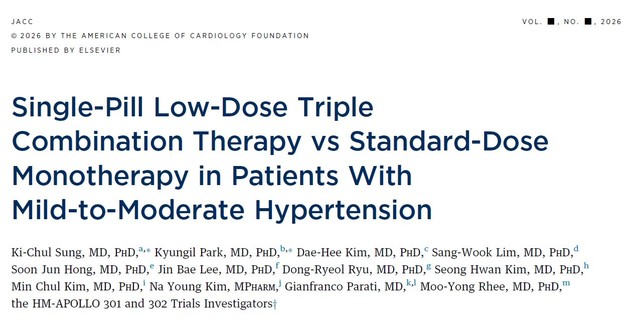 한미약품이 개발한 초저용량 3제 항고혈압제 '아모프렐'의 3상 임상 연구결과가 미국심장학회 공식 저널 JACC(IF 22.3)에 게재됐다. 국내 제약사가 고혈압 치료제 3상 결과를 JACC에 등재한 첫 사례다.