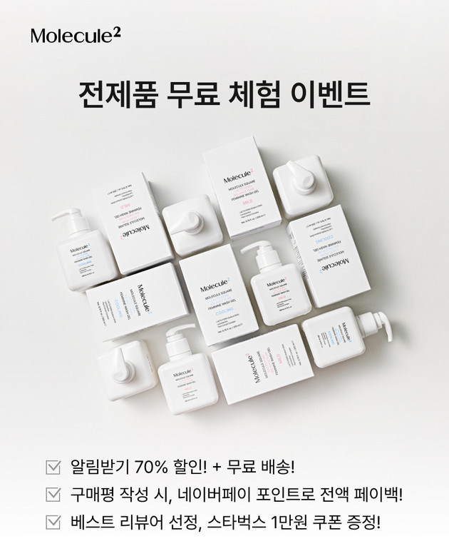 핵심 성분인 저분자 당근 콜라겐과 시카 PDRN을 담은 '탄력윤광 엑스투' 스킨케어 4종(토너 패드, 크림, 랩핑 마스크, 톤업 선크림)과 유산균 배합으로 Y존 밸런스를 케어하는 '락토 피디알엔 밸런스 퓨어 여성청결제' 2종(마일드, 쿨링) 등 몰리큘 스퀘어 신제품 전 라인업이 이번 프로모션 대상이다.