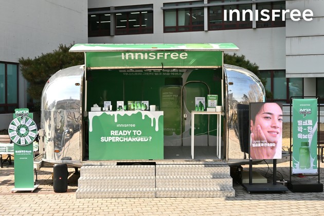 이니스프리가 개강 시즌을 맞아 서울 소재 대학 캠퍼스 3곳에서 '그린티 밀크 보습 에센스' 무빙팝업을 진행했다고 13일 밝혔다.