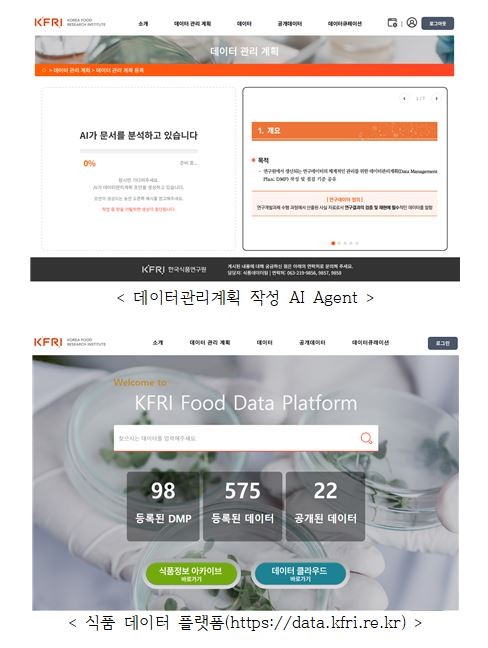 한국식품연구원(원장 백현동, 이하 식품연)은 '식품 R&D AI 에이전트'를 추진해 '식품 데이터 플랫폼'에 AI 기반 DMP(Data Management Plan) 작성 지원 기능을 개발했다고 밝혔다.
