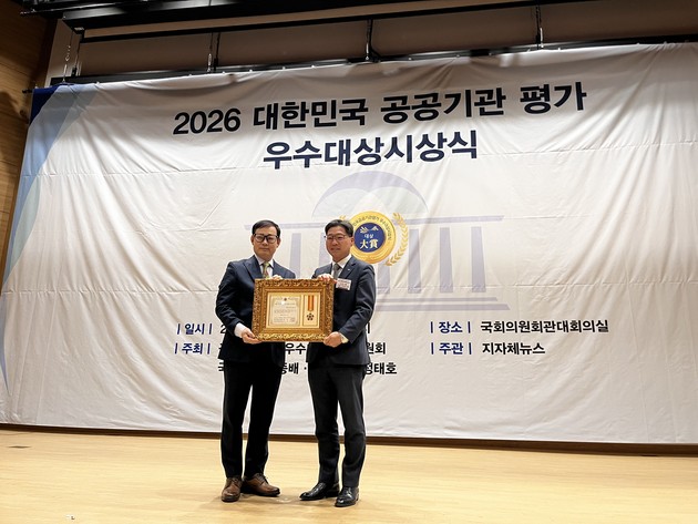 이번 시상식은 공공기관평가 우수대상 조직위원회와 이종배 국회의원, 정태호 국회의원이 공동 주최한 행사로, 정책소통·정보공개·적극행정 등 다양한 분야의 성과를 종합적으로 평가해 우수 공공기관을 선정·시상했다.