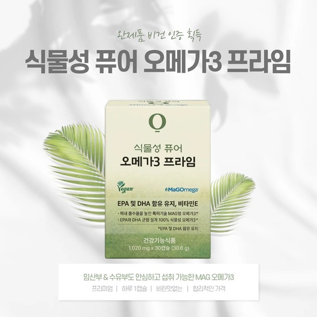 뉴바이오코리아 관계자는 "식물성 퓨어 오메가3 프라임은 특허받은 MAG형 기술과 완제품 비건 인증을 결합해 임산부부터 남녀노소 누구나 안심하고 섭취할 수 있도록 만든 프리미엄 제품"이라며, "중성지질 및 혈행 개선과 눈 건강 관리에 필요한 현대인들에게 흡수율의 차이를 직접 경험하게 해줄 것"이라고 밝혔다.