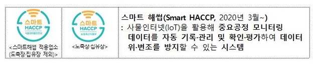 또 농식품부는 생산 단계 스마트 해썹 시스템 개발 및 현장 구축 사업을 추진해 생산단계(도축·집유업) 부터 스마트 해썹으로 실시간 안전관리를 할 수 있도록 지원할 계획이다.