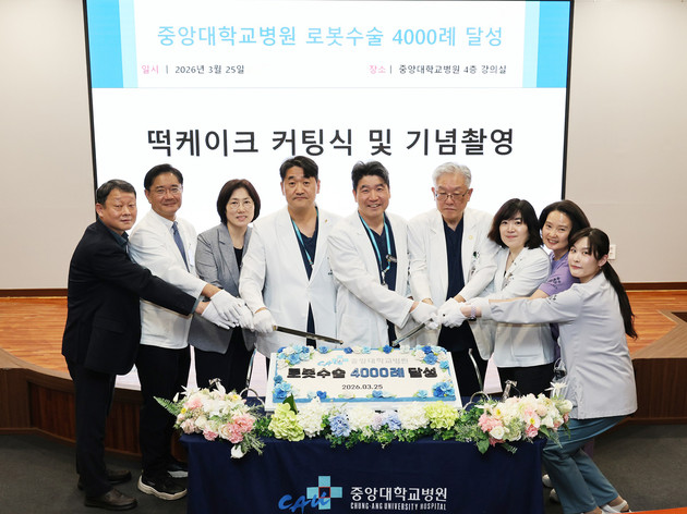 중앙대병원은 3월 25일 병원 4층 강의실에서 로봇수술 4000례 달성 기념식을 개최했다. 이번 성과는 2024년 10월 3000례 달성 이후 약 1년 4개월 만에 이룬 것으로, 로봇 수술 역량이 단기간에 크게 확대됐음을 보여준다.