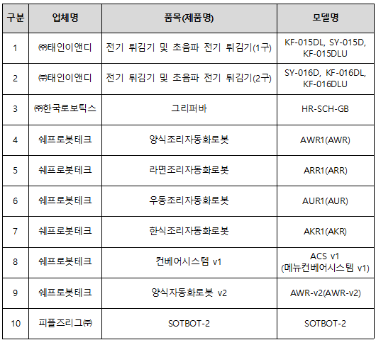 아울러 인증 제품은 해당 심사기관의 미국 본사(NSF 또는 UL Solutions) 누리집에 '인증 제품 목록'으로 등재된다. 국내 인증 규격과 미국 인증 규격(NSF)의 동일 평가 항목에 대해서는 상호 동등성을 인정해 국제적 공신력을 확보했으며, 비교적 낮은 비용으로 인증을 받을 수 있어 국내 조리로봇 산업의 성장과 수출 확대에도 기여할 것으로 기대된다.