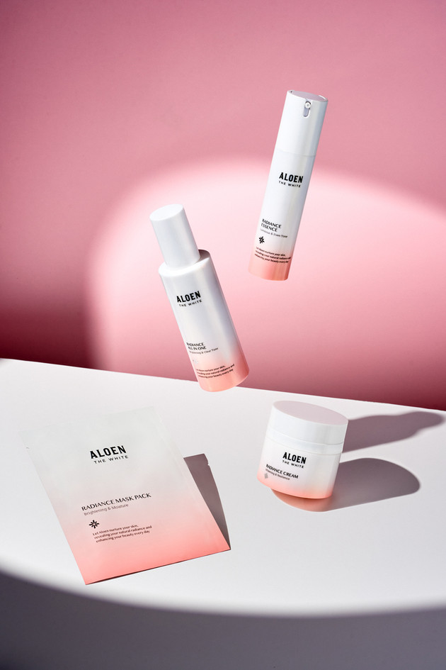 '알로엔 더 화이트 래디언스 올인원'은 스킨, 로션의 단계를 하나로 통합했다. 피부의 결을 정돈하는 첫 수분 레이어 단계로 아침 출근 준비로 바쁜 시간, 여행이나 출장 중 간편하게 스킨케어를 완성하고 싶을 때 적합하다.