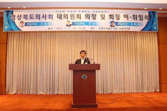 이날 총회서 정능수 회장은 인사말을 통해 “새로 의협을 이끌어갈 39대 회장에 당선되신 추무진 회장님께 먼저 경북의사회를 대표해서 축하에 말씀을 드린다며, 이와 함께 비록 낙선 하신 내분의 후보님께도 격려의 박수를 보낸다.”고 했다.