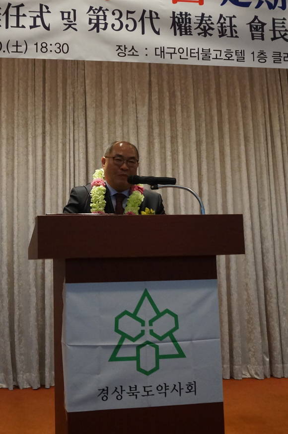 대의원 150명 중 103명(위임포함)의 참석과 김순례 대한약사회부회장과 정병윤 경상북도 경제부지사를 비롯하여 남유진 구미시장, 최영조 경산시장, 반용석 경북치과의사회장, 이한길 대구시약회장, 정태천 영남약대학장, 김종철 심평원대구지원장, 권태환 안동대학교총장, 현수환 동원약품회장, 백서기 대경유통협회장, 이상헌 대경제약협의회장 등 많은 내빈이 참석한가운데 이호일 총무이사의 사회로 신, 구 회장 이 취임식을 가졌다.