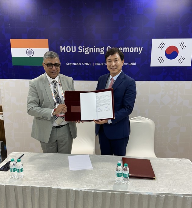 한국의약품수출입협회(회장 류형선, 이하 '의수협')는 인도 뉴델리에서 개최된 i-PHEX 2025 전시회 기간 중인 지난 5일 바라트 만다팜 전시장에서 인도의약품수출진흥위원회(회장 Namit Joshi, 이하 'Pharmexcil')와 상호 협력을 위한 업무협약(MOU)을 체결했다고 밝혔다.