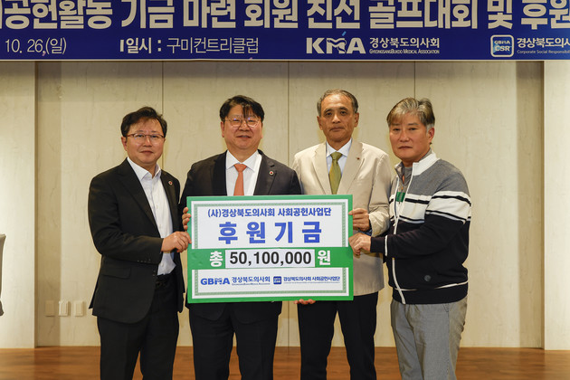 경북의사회(회장 이길호)는 지난 26일 구미컨트리클럽에서 '제19회 사회공헌활동기금 마련 회원 친선 골프대회' 및 (사)경상북도의사회 사회공헌사업단 후원기금 전달식'이 성황리에 개최됐다.