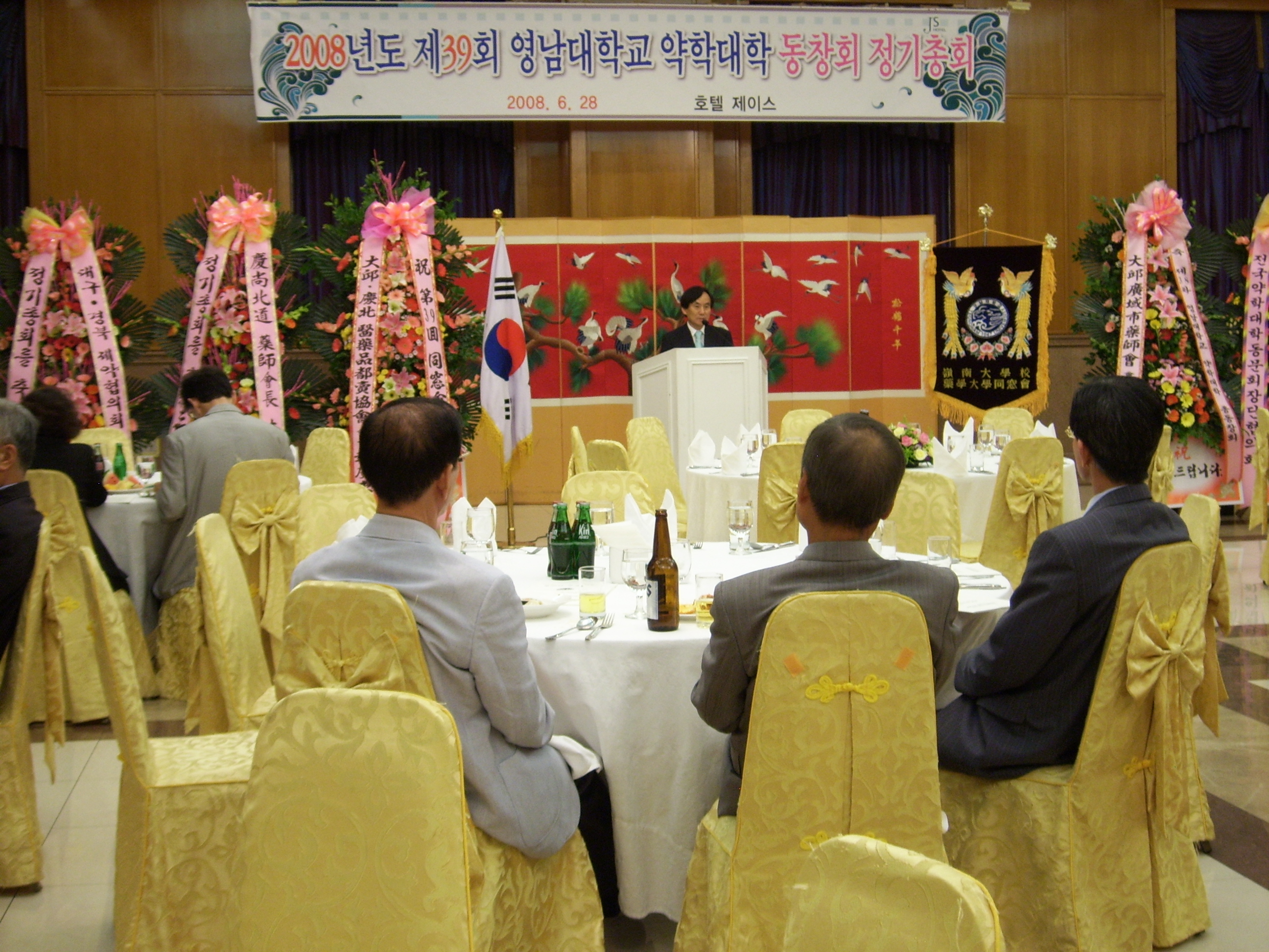 영남대학교약학대학 후원회 및 장학회 이사장 이교삼 씨와 전국약대동문회장단 연합회 정재욱 회장, 대구시약사회 구본호 회장, 경북약사회 이택관 회장 등 다수 내빈과 회원 90여명이 참석한 가운데 열린 이날 총회는 지난해 회무 및 사업결과보고가 있었고 의안심의에서 2007년도 예산안 9,700여만원중 1,200여만원을 집행한 나머지 8천5백여만원을 이월금으로 결산된 세입세출 결산안을 그대로 승인하고 올해 예산안 9,700만원을 확정 통과시켰다. 총회는 이어 임원 선출에 들어가 류지영(약대 7회)회원이 신임 총동창회장으로 선출하고 감사에 양성호, 이재국 동문이 피선되었으며, 부회장을 비롯한 회장단은 신임회장에게 위임했다. 신임 류지영 회장은 인사말을 통해 “지역간, 선․후배간 격의 없는 대화로 내실을 다지고 침체된 약계에 보다 활성화 될 수 있도록 각종 문화 행사 등 보람있고 뜻 깊은 행사를 수시로 개최 하겠다”고 말했다. 이날 수상자는 다음과 같다. ▶축하패 = 전혜숙 국회의원(전 경북약사회장) ▶표창패 = 정재욱 전국약대동문회장단연합회 회장 |