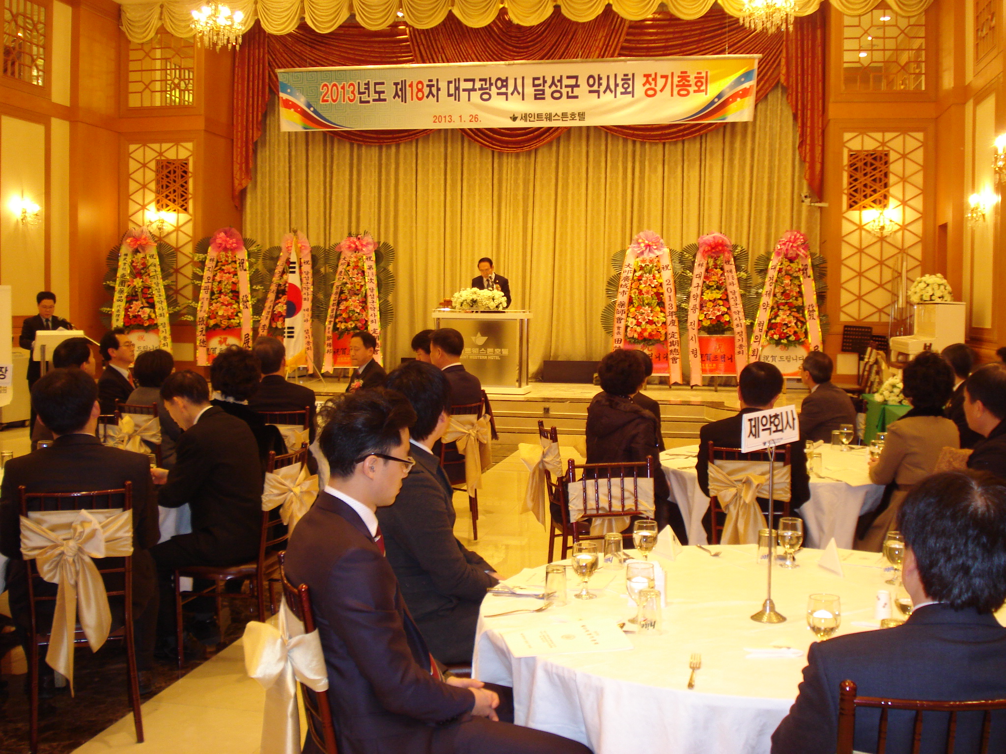 올해로 회장직을 3회에 걸쳐 연임하게 된 이기동 회장은 연임 수락 인사말을 통해 “마지막 3년 회원님들을 위해 봉사한다는 각오로 회장직을 한번 더 맡아 일하겠다며, 앞으로 회원님들의 적극적인 협조와 꼭 회무 참여”를 당부했다. 박용우 총회의장의 주재로 2부 의안 심의에서는 3,100만여원의 세입중 1,687만여원을 집행한 나머지 1,416만여원을 차기이월금으로 두고 결산된 2012년도 세입세출 결산안을 이의 없이 승인하고 2013년도 예산안 3,131여원을 심의 원안대로 통과시켰다. 총회는 이어 이기동 회장단 및 집행부 전원을 그대로 유임시키는 한편 박용우 총회의장과 도운용 감사도 유임시켰다. 이날은 또 배연희(한빛약국) 회원에게 시약회장 표창을, 김민아(명성약국) 회원에게는 달성군약사회장 표창이, 김영중 씨(우림약품)와 임현묵 씨(한미약품) 등 대외 인사에게는 회장감사패가 각각 수여됐다. |